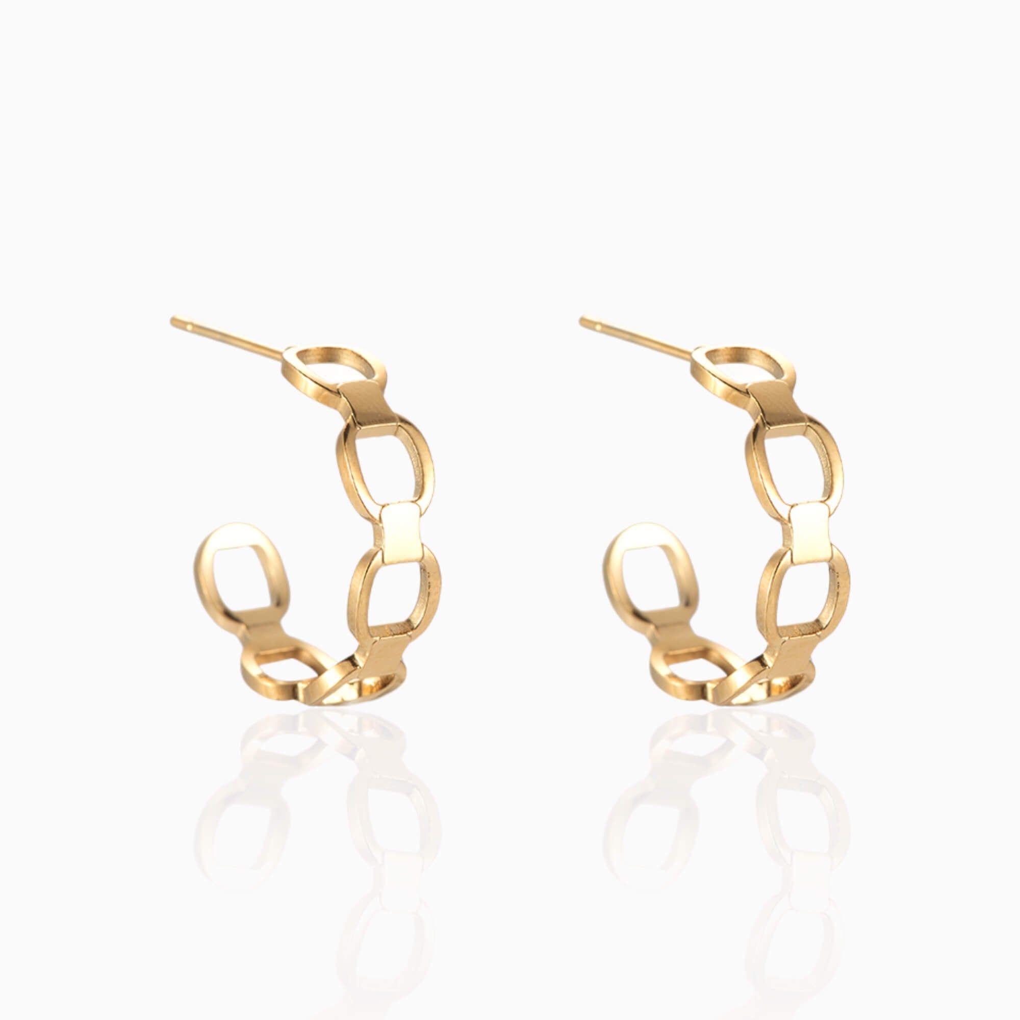 The Laura Creoles are the perfect accessory for the stylish individual. Crafted from 14k gold plated metal, these eyecatching creoles are sure to turn heads. Show off your unique style with the Laura Creoles.