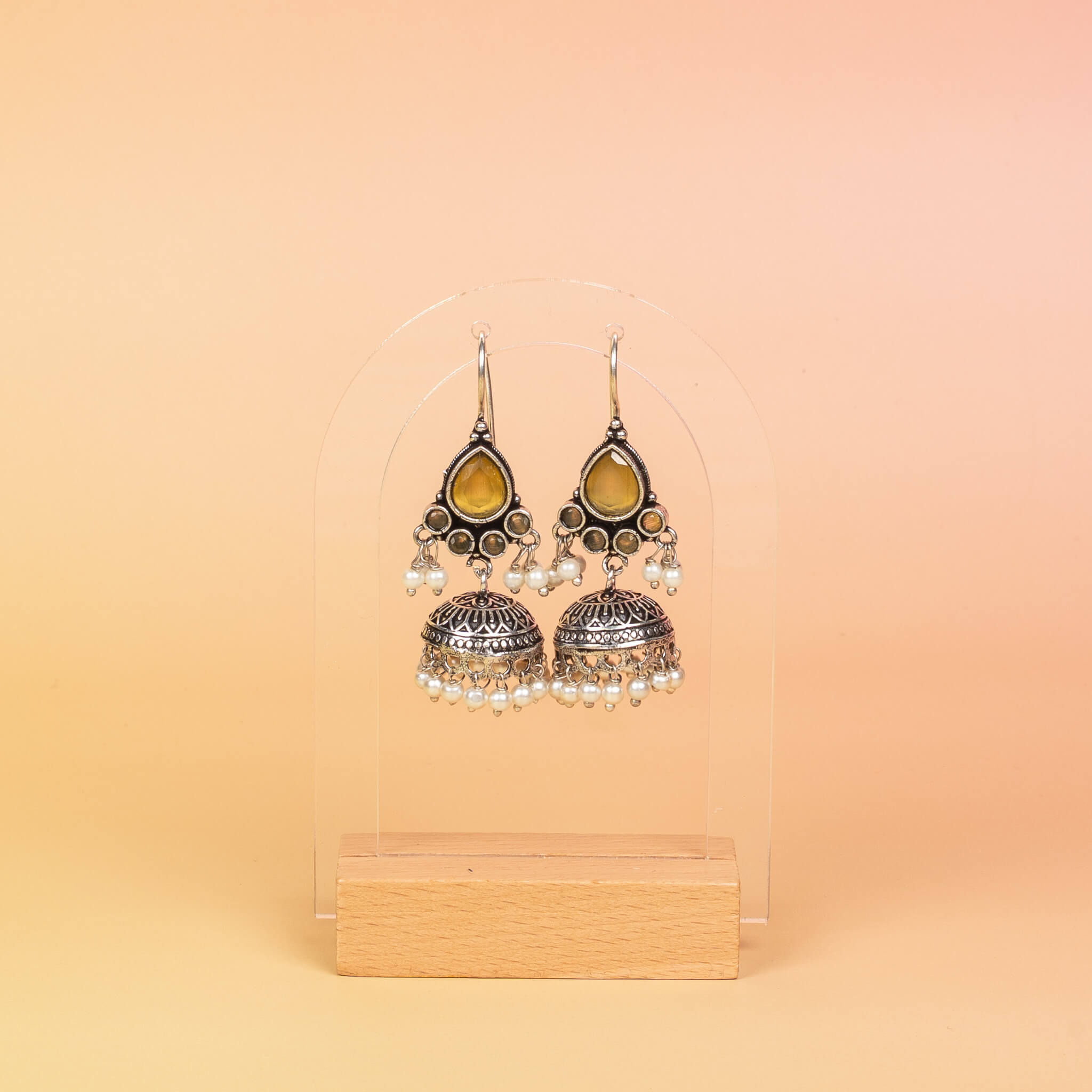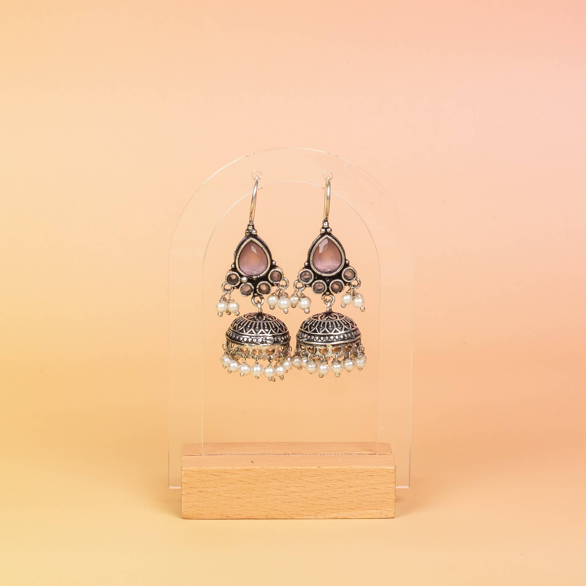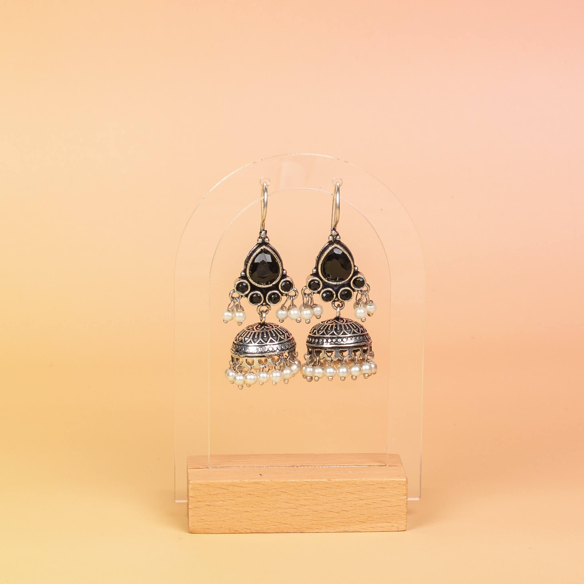 Elegant oxidized earrings featuring Mona Lisa with high-quality AD stones. The traditional Jhumkie style brings a classic touch, while the lightweight finish ensures comfortable wear throughout the day. Available in six distinct color options to complement any look.