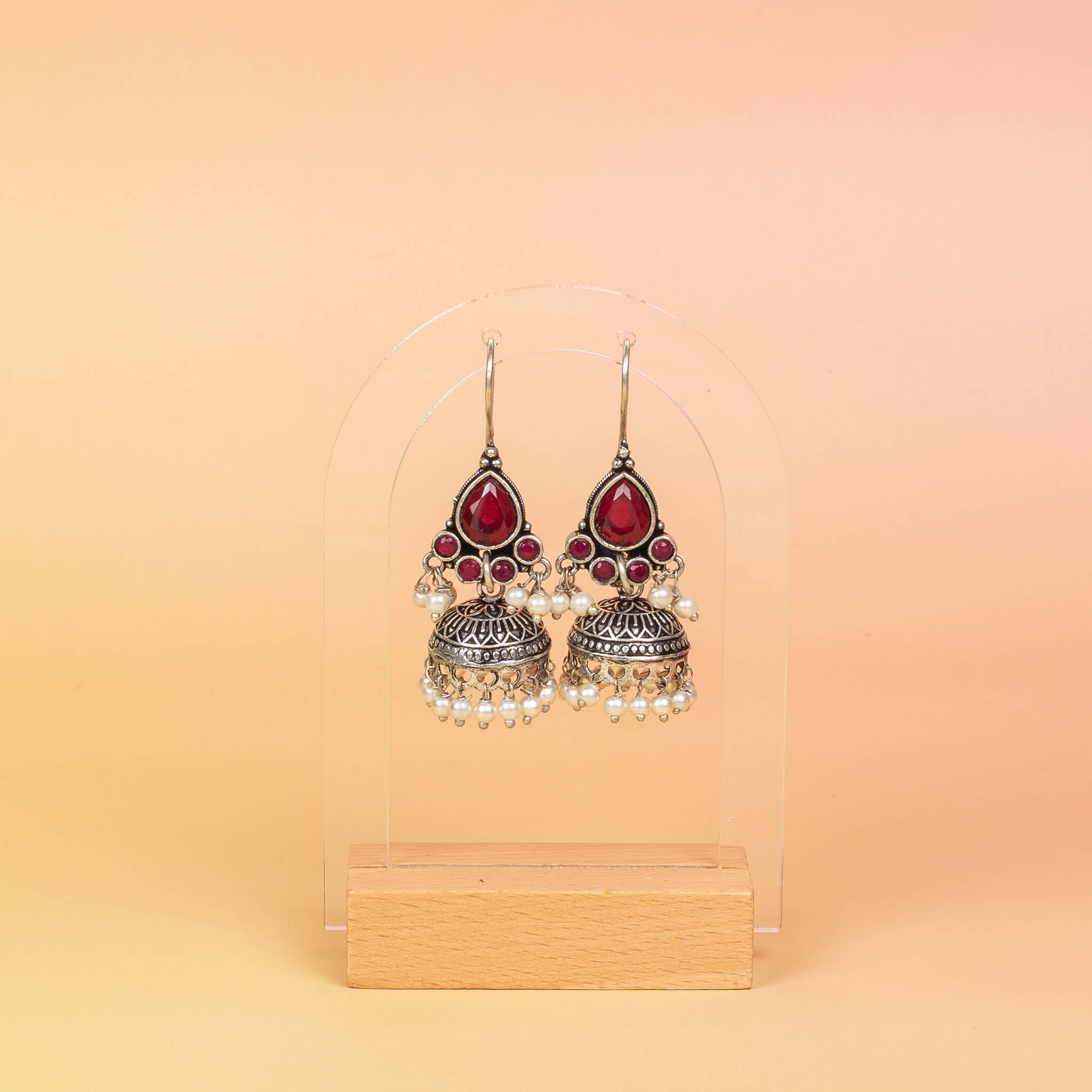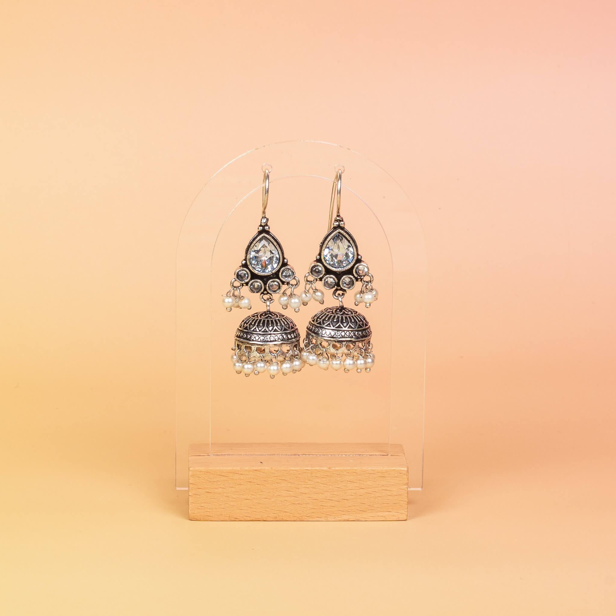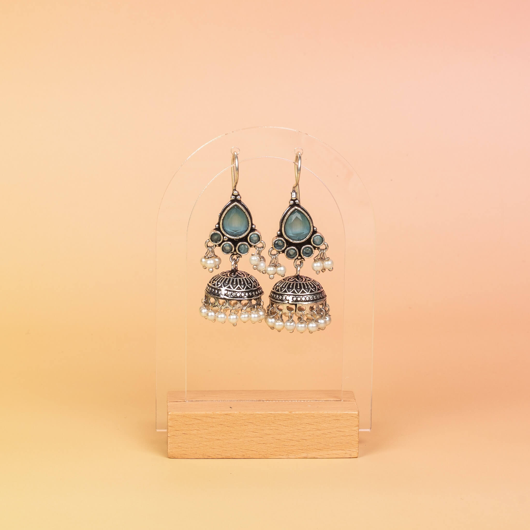Elegant oxidized earrings featuring Mona Lisa with high-quality AD stones. The traditional Jhumkie style brings a classic touch, while the lightweight finish ensures comfortable wear throughout the day. Available in six distinct color options to complement any look.