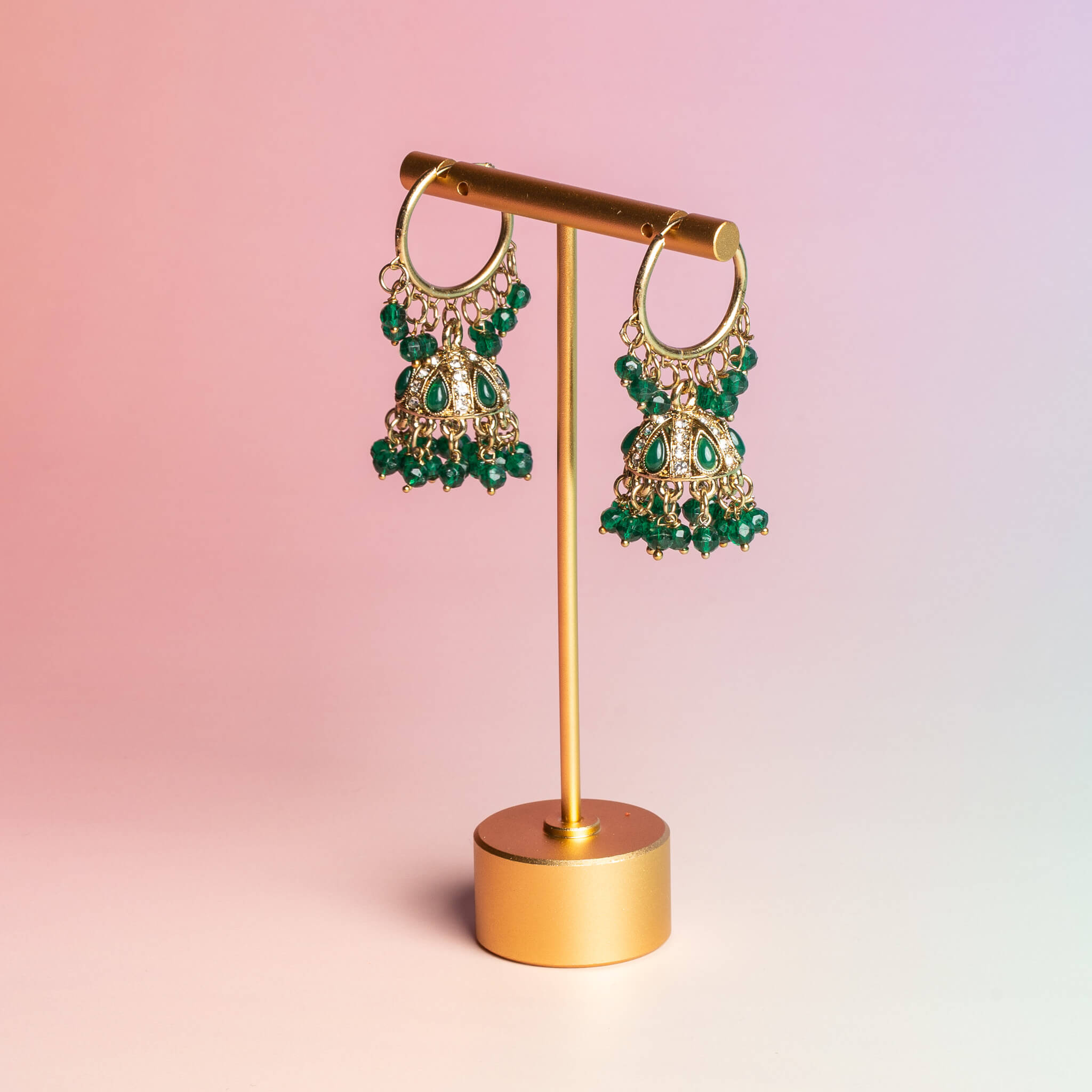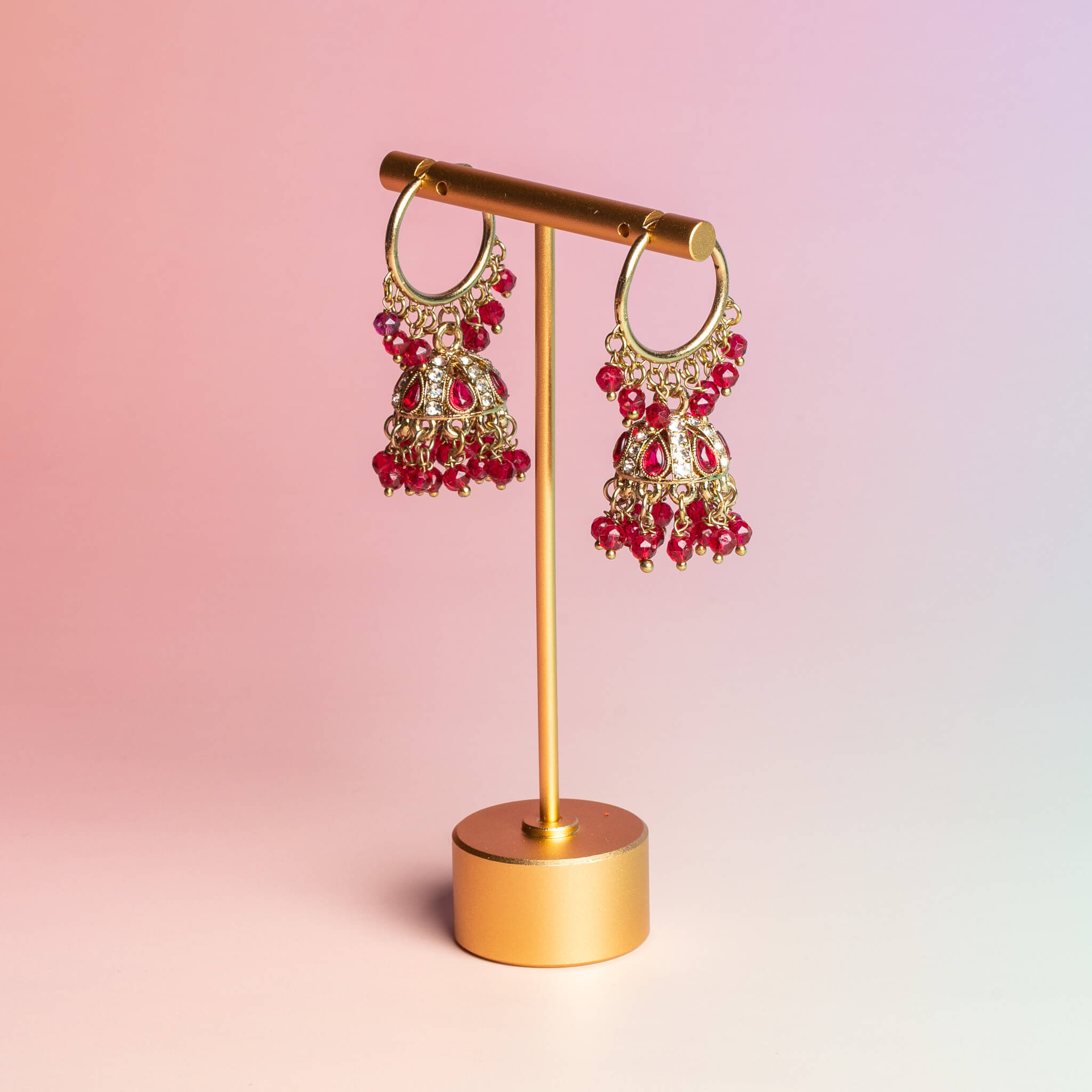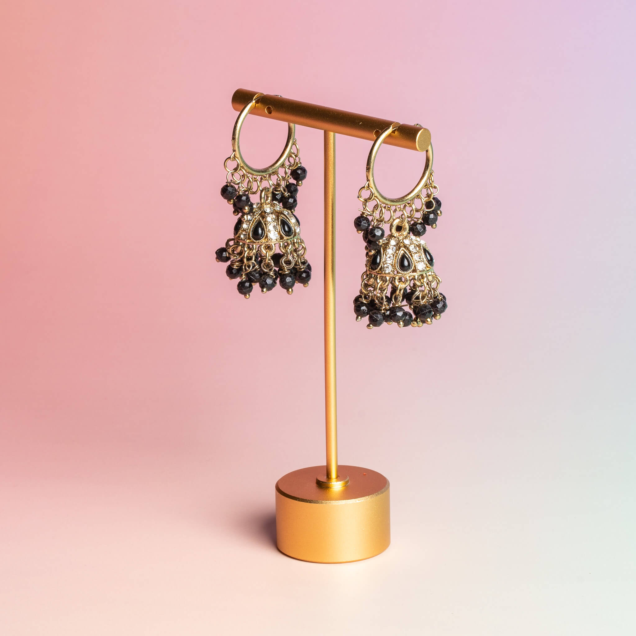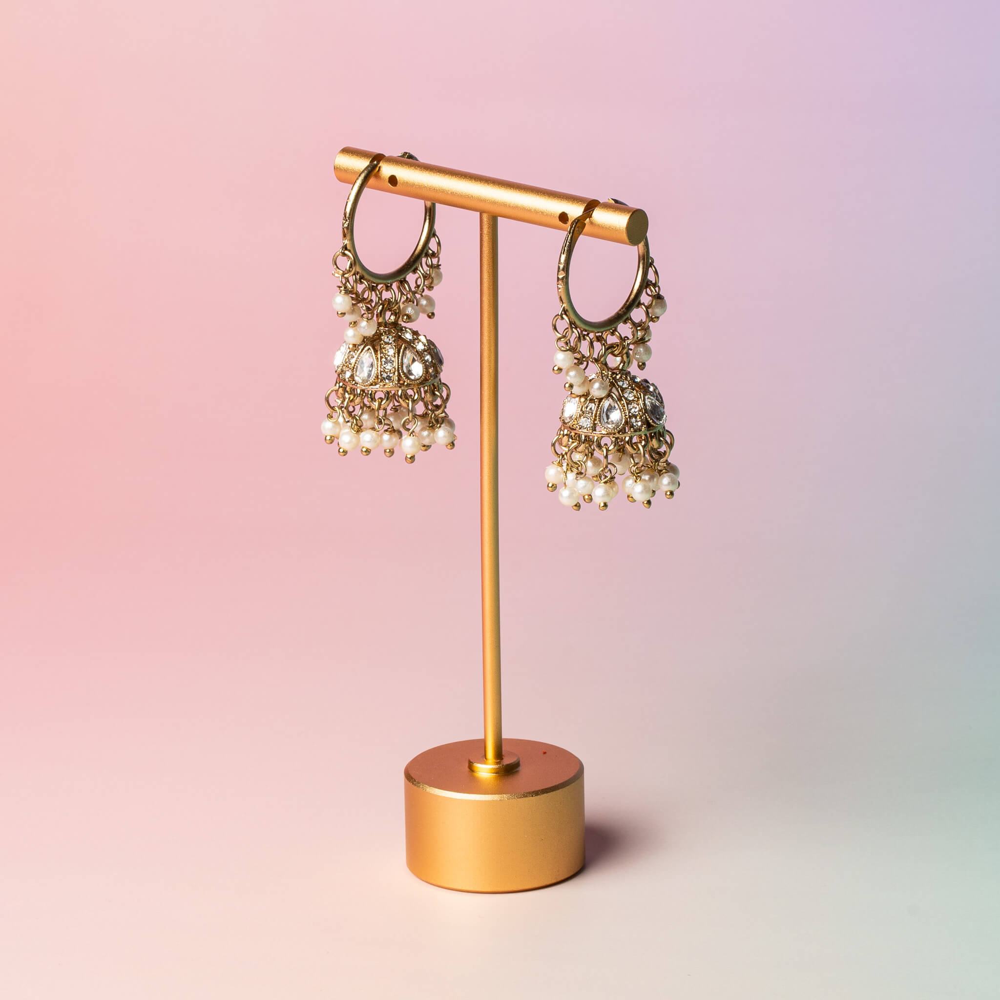 Introducing Muskaan Jhumkie Waliyan, the exclusive new design from Maharani. This elegant and heavy Waliyan features Jhumkies in a smaller size, adorned with shiny stones and pearls for a perfect finishing touch to any look. Elevate your Indian jewelry collection with this must-have piece.