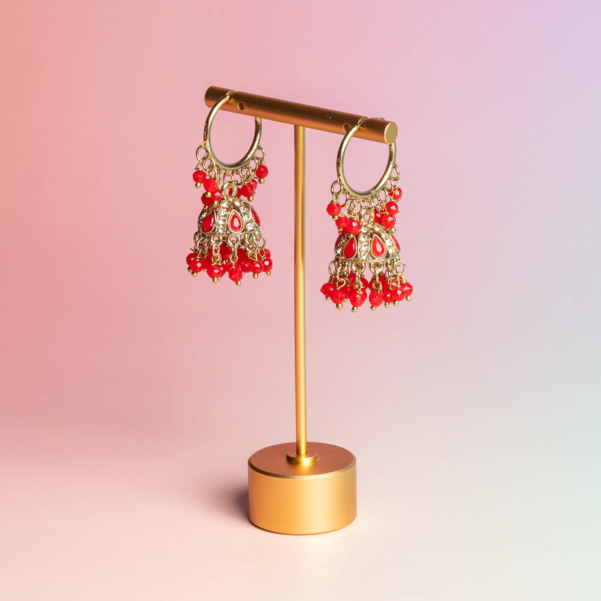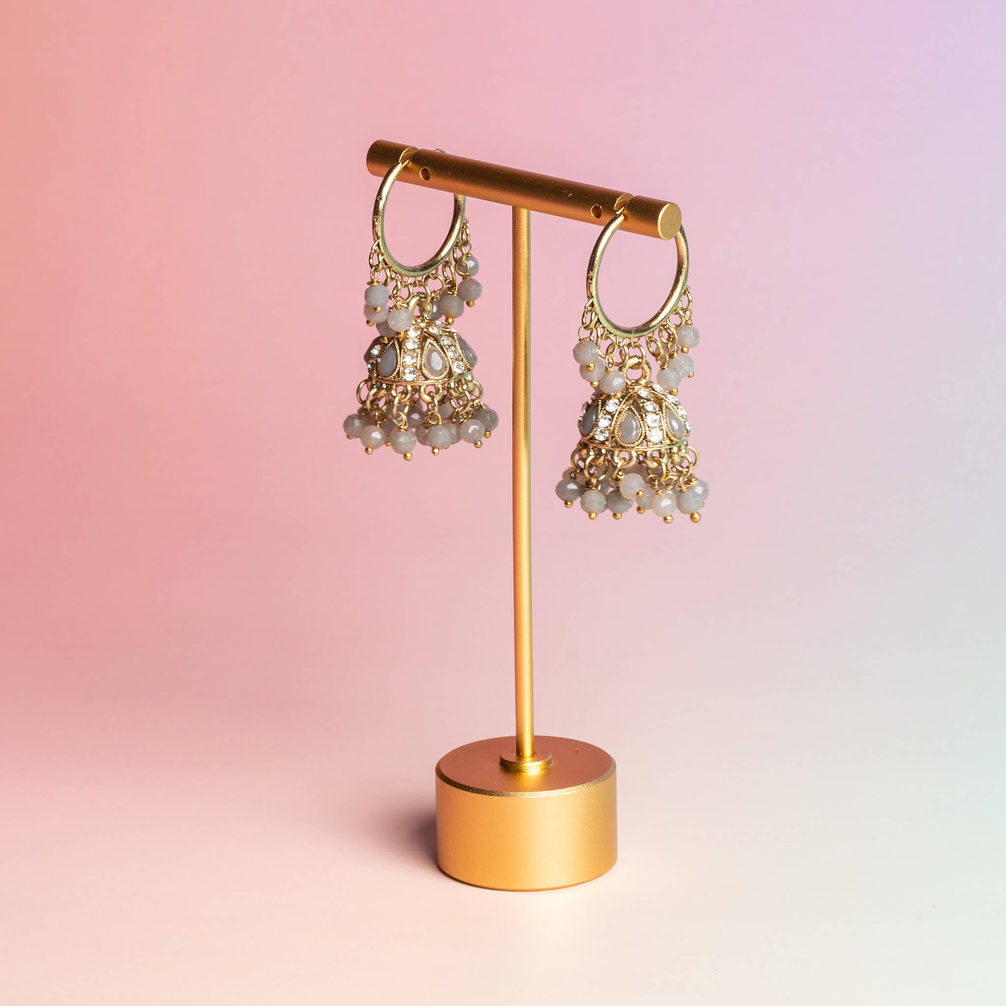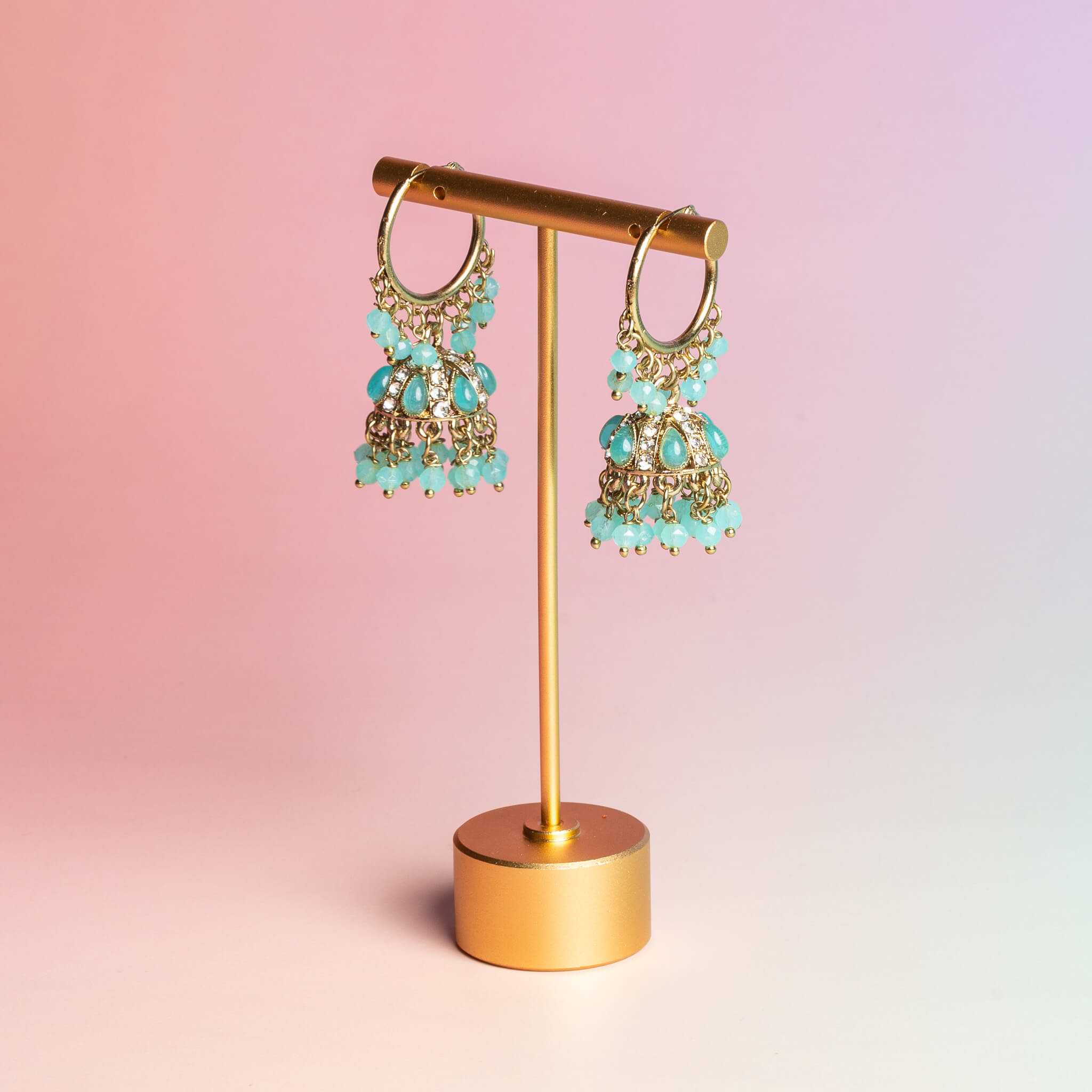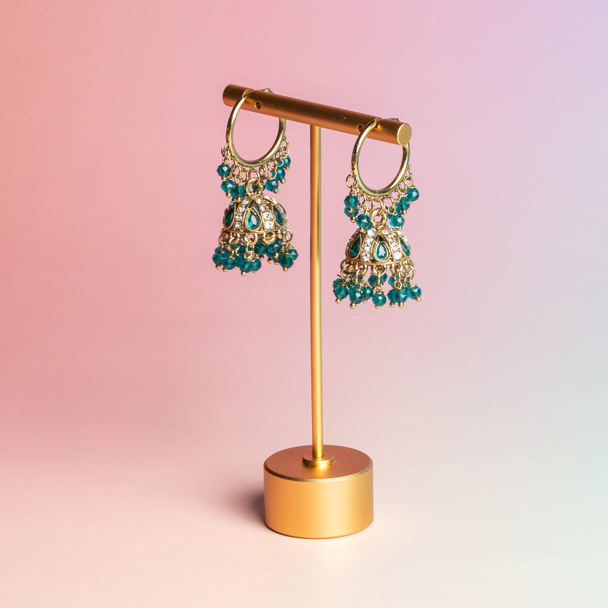Introducing Muskaan Jhumkie Waliyan, the exclusive new design from Maharani. This elegant and heavy Waliyan features Jhumkies in a smaller size, adorned with shiny stones and pearls for a perfect finishing touch to any look. Elevate your Indian jewelry collection with this must-have piece.