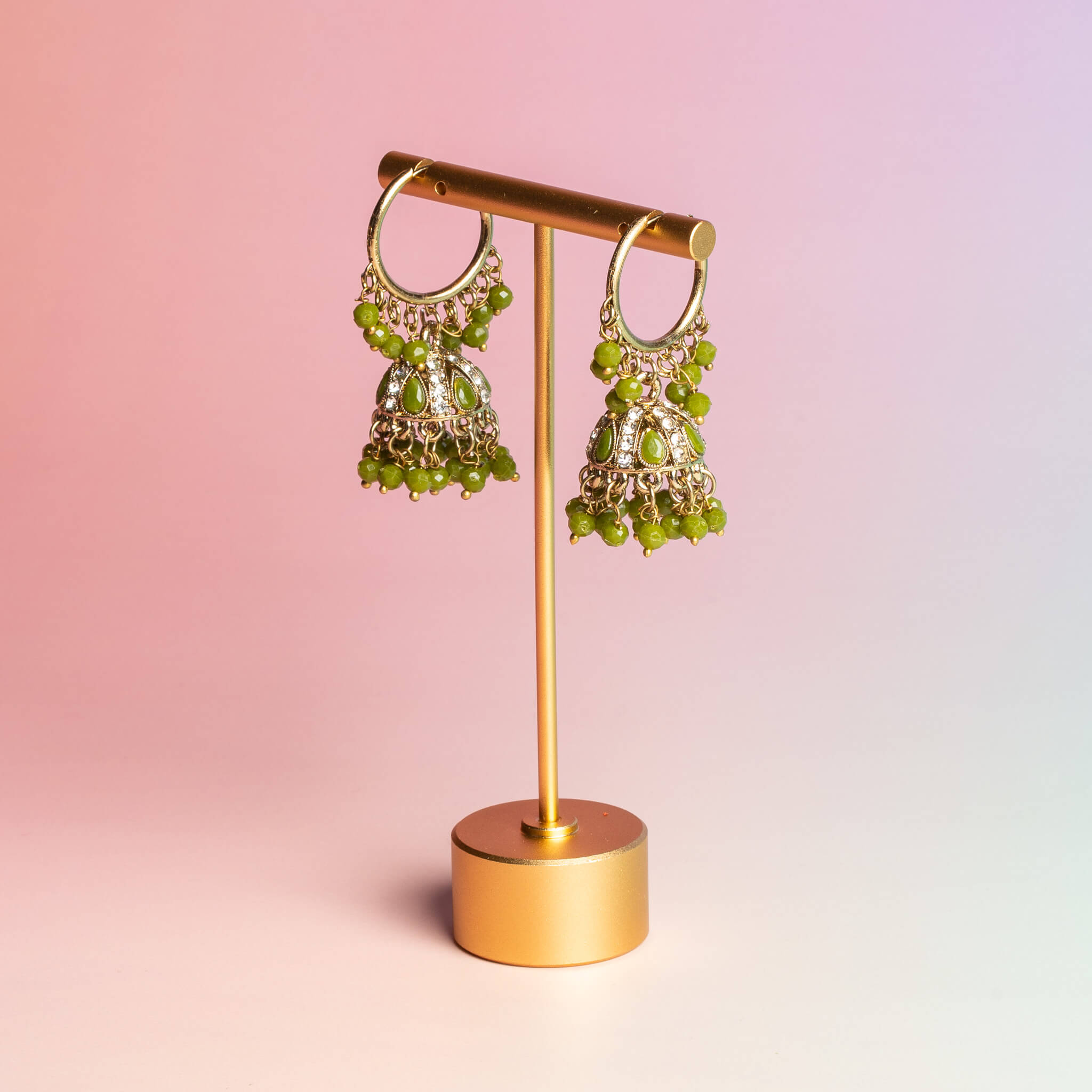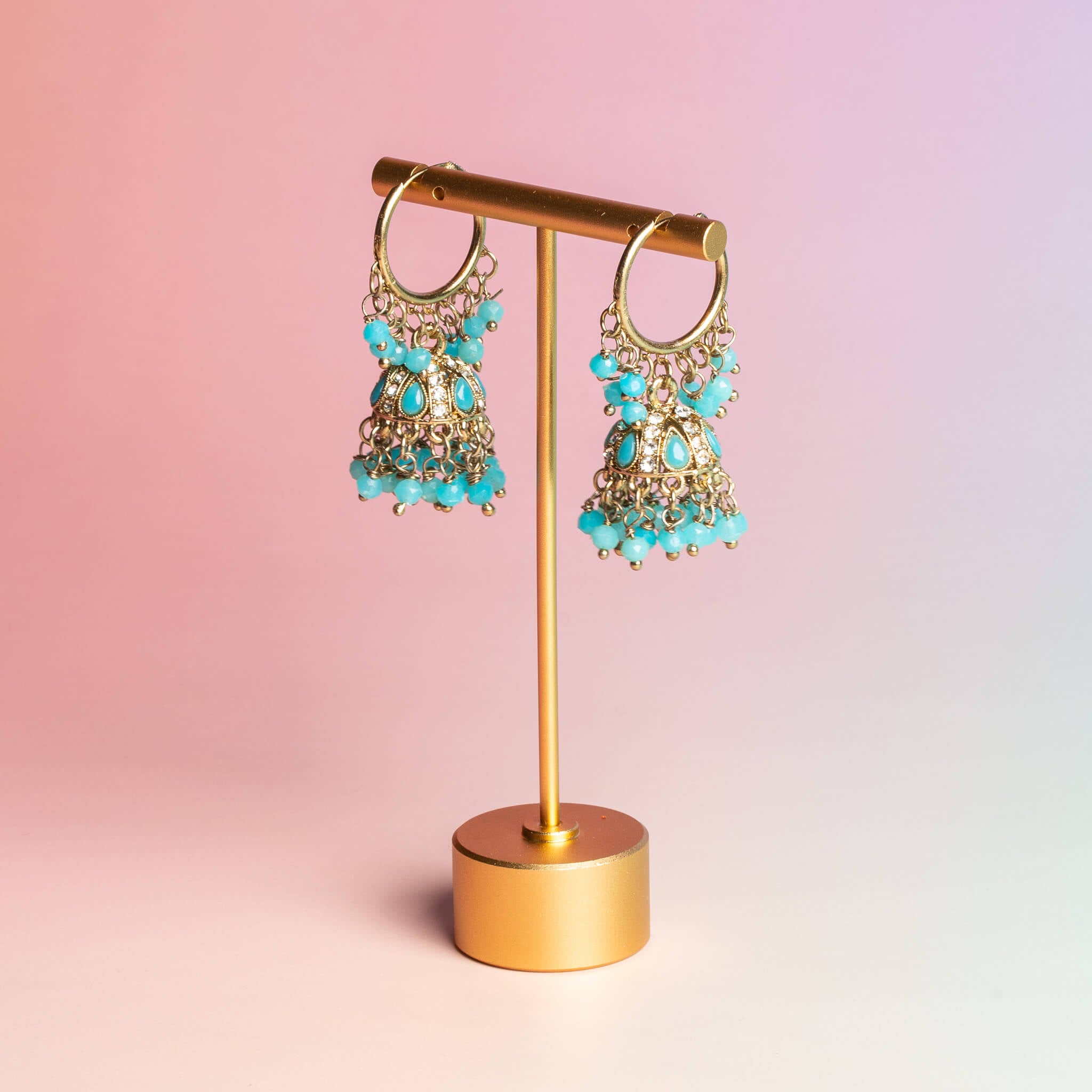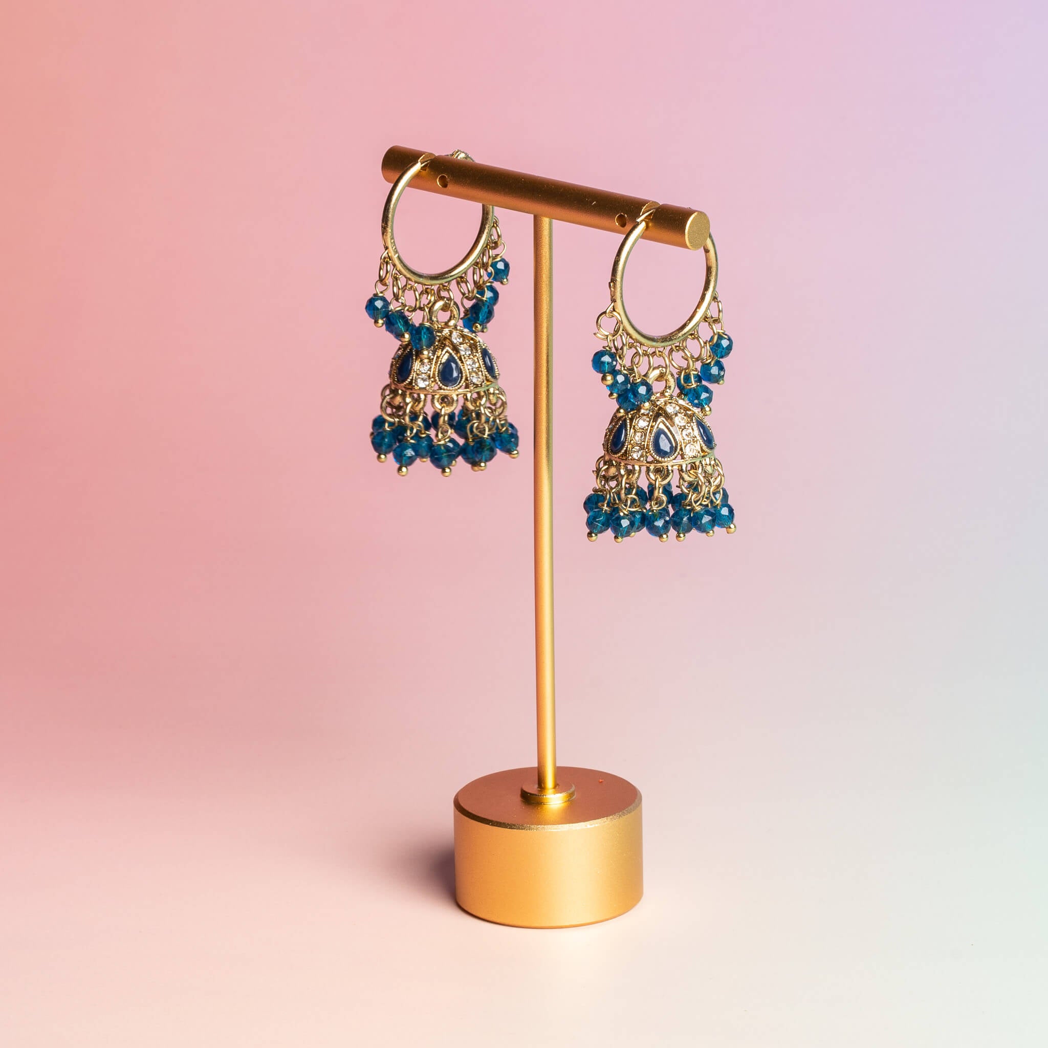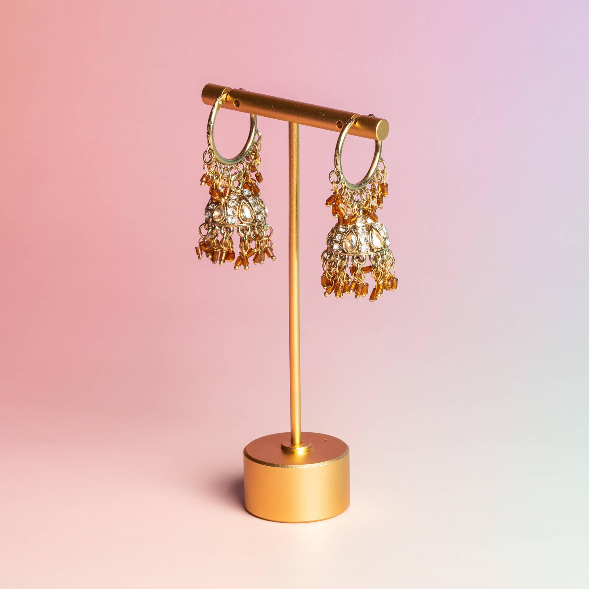 Introducing Muskaan Jhumkie Waliyan, the exclusive new design from Maharani. This elegant and heavy Waliyan features Jhumkies in a smaller size, adorned with shiny stones and pearls for a perfect finishing touch to any look. Elevate your Indian jewelry collection with this must-have piece.