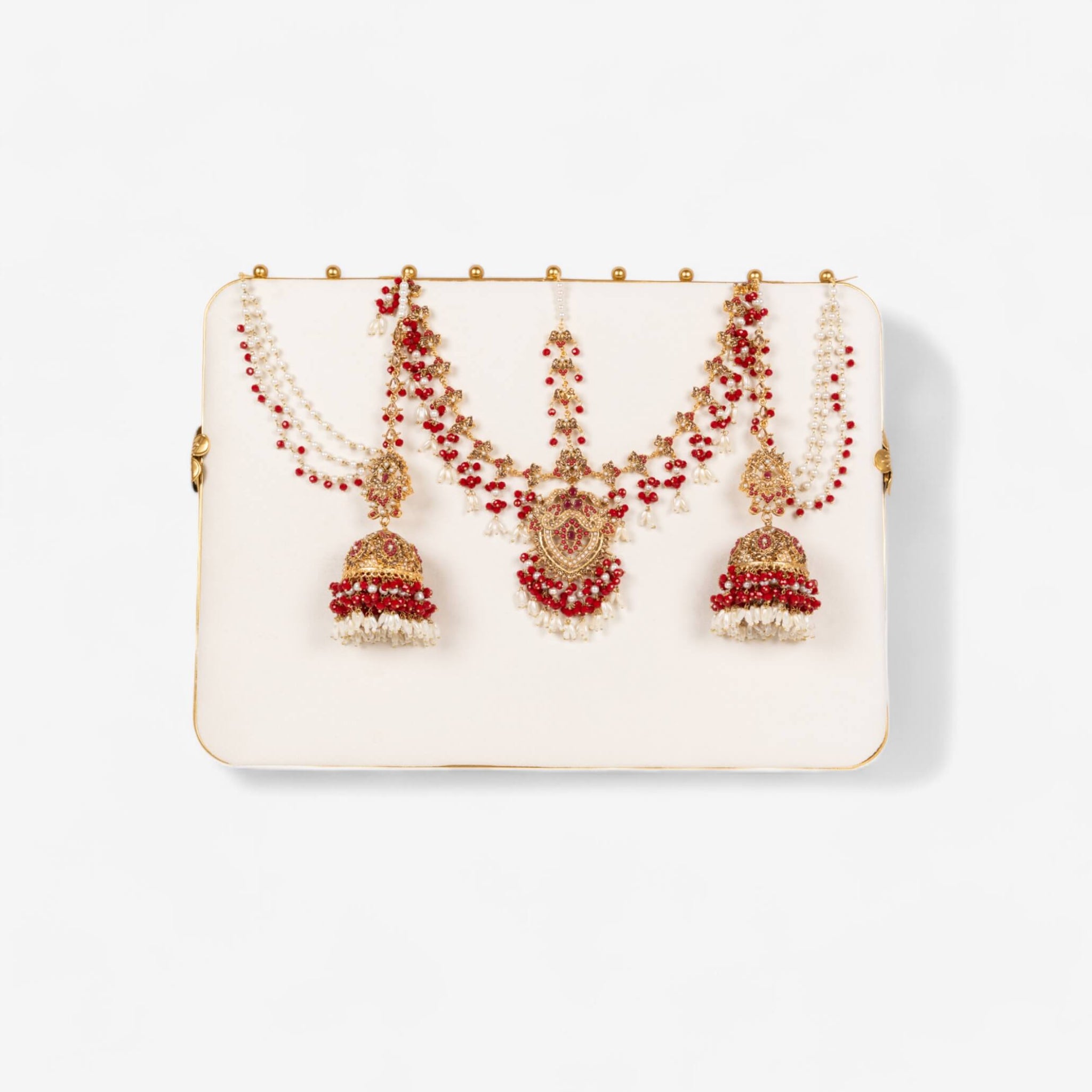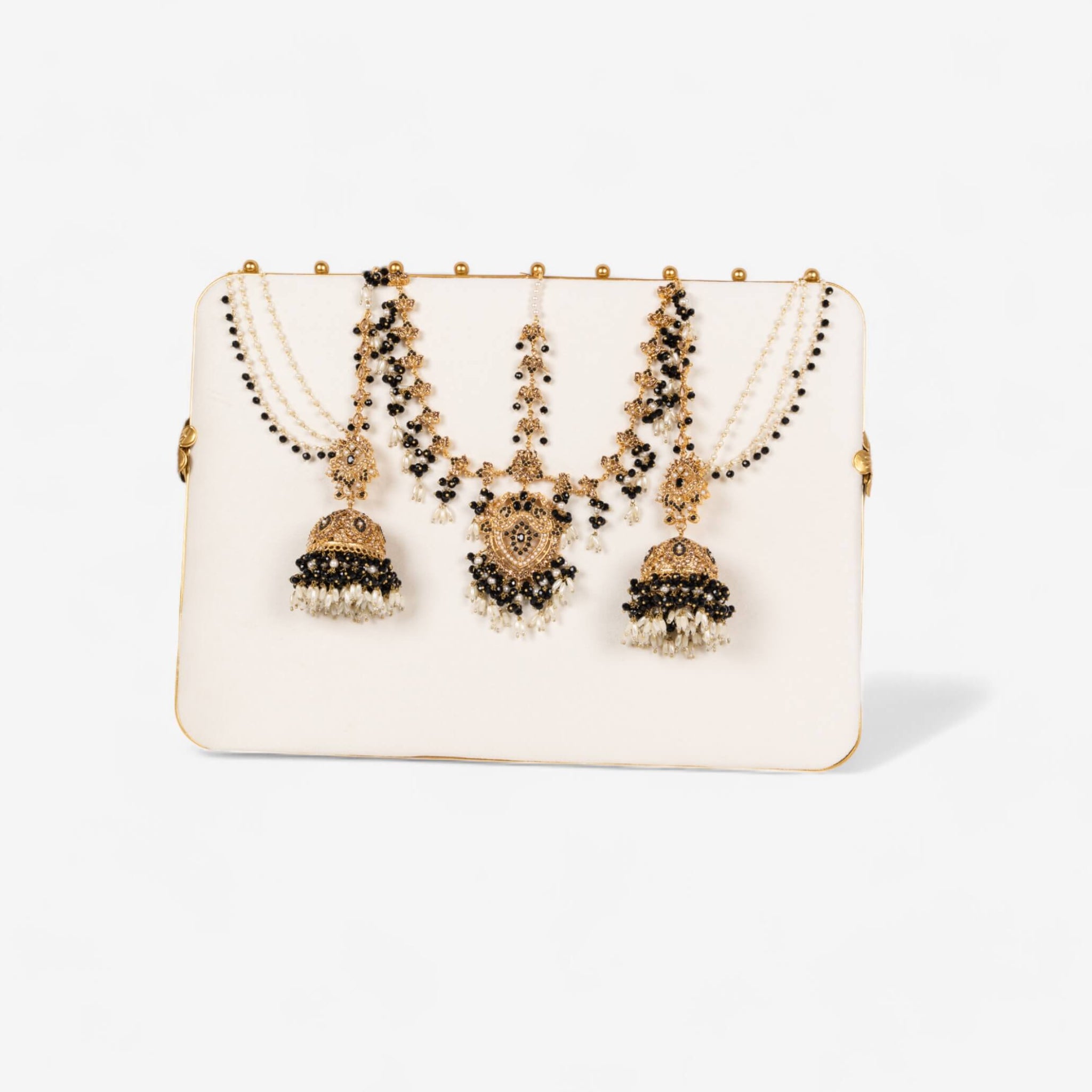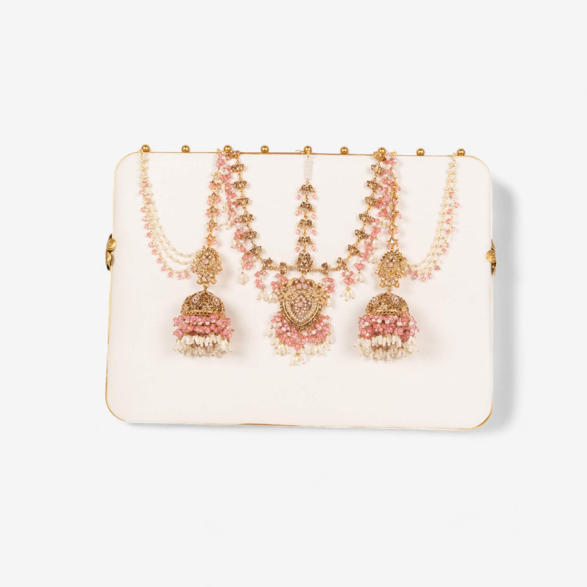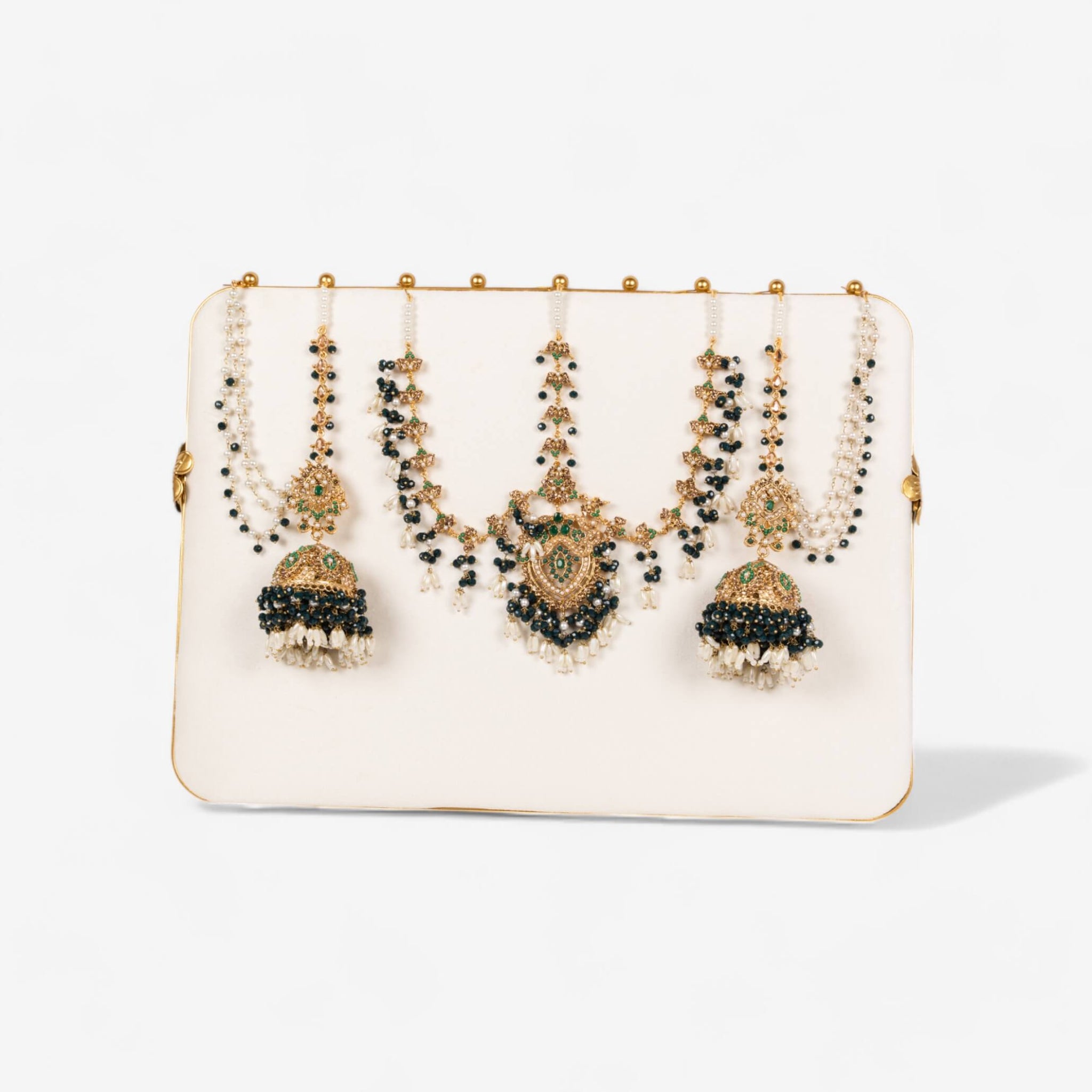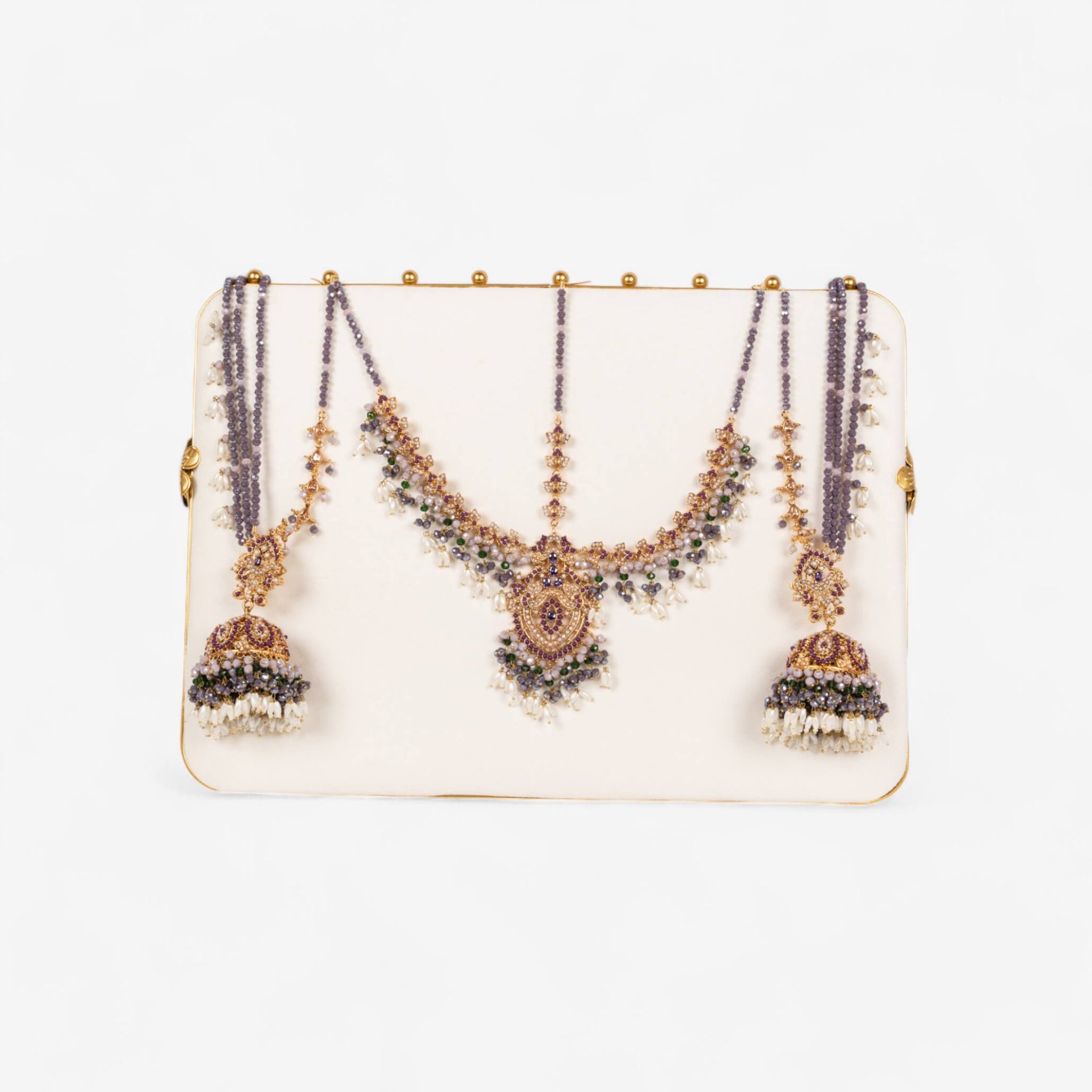 Introducing our Veer Mathapathi Set, our best-selling earrings now come with a beautiful mathapathi design. Embrace both modern and traditional luxury with this must-have accessory. Elevate any outfit with this versatile and stylish set.